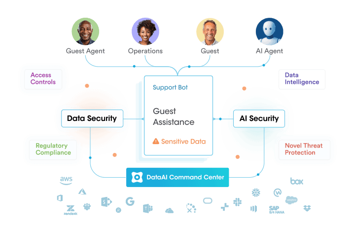 • Discover sanctioned and shadow AI across SaaS, operations, guest services, and support systems.