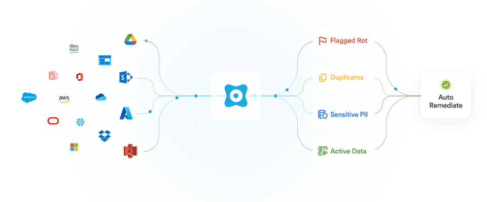 • Integrate alerts across federated systems (Slack/ServiceNow/Jira) to review high-risk or stale data, for remediation