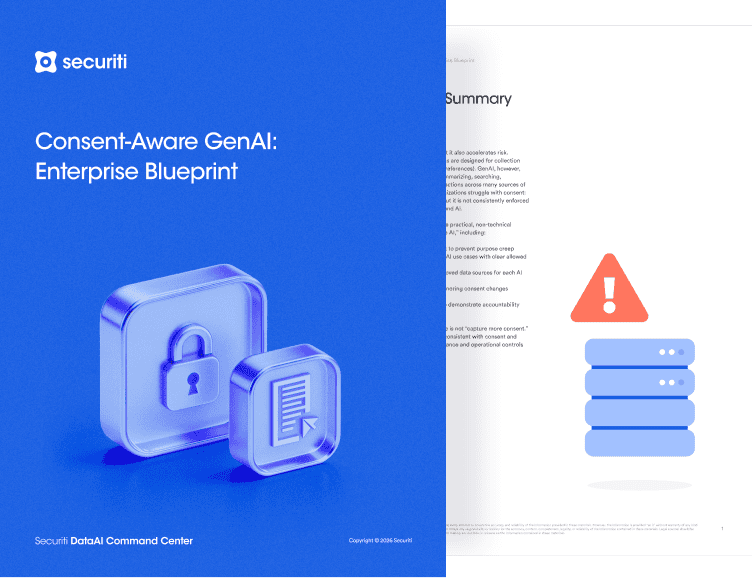 Securiti’s Data Command Center helps organizations operationalize privacy and governance across data and AI, ensuring consent and purpose are consistently enforced. It enables data discovery and classification across hybrid environments, applies policy-based controls, strengthens cross-functional oversight, and supports safe GenAI adoption by reducing unintended use of sensitive or restricted data.